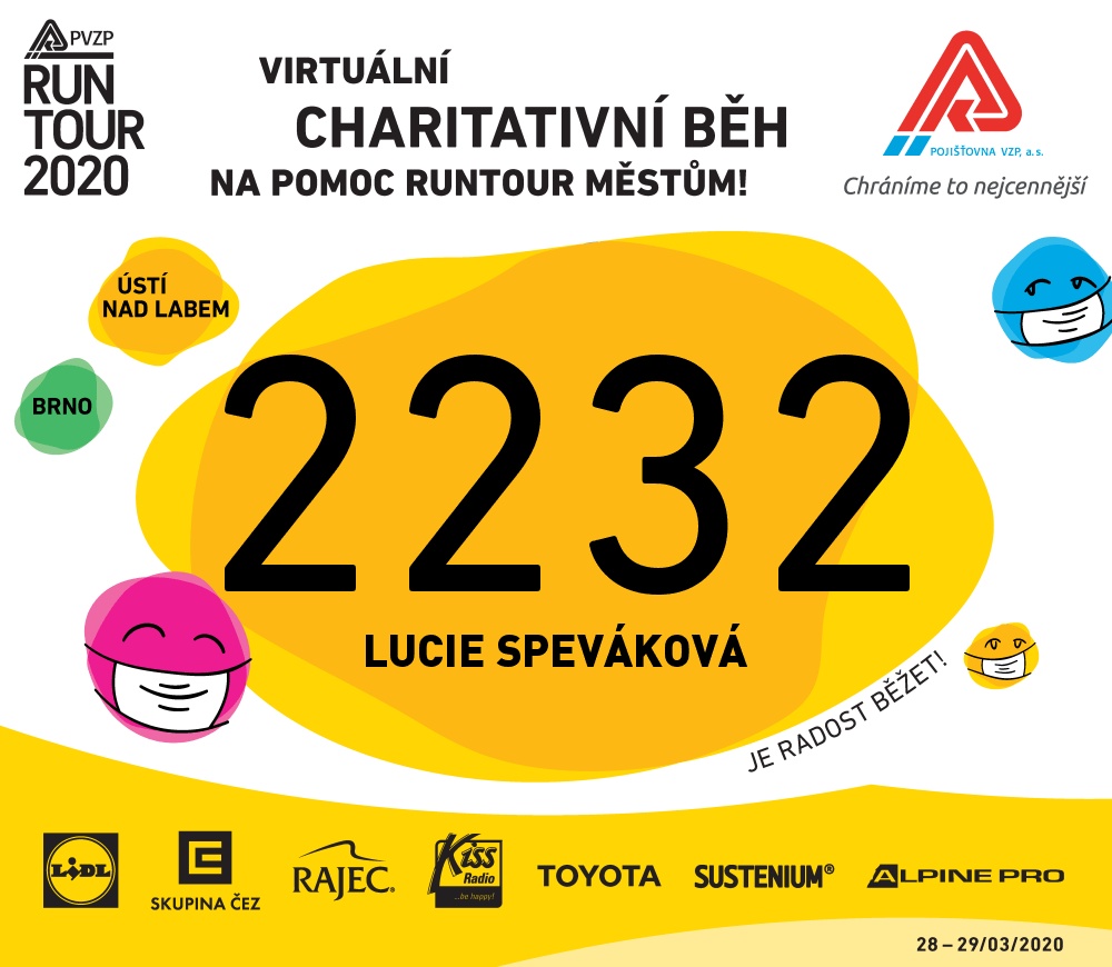 Yesterday I joined another virtual run. It was organized by the same organizer as the first one, RunTour. This time, the runners had to register like for a classic race but just for a symbolic price 100 CZK (approx 4 EUR) plus they could add any sum for the charity (I added 50 CZK which is approx 2 EUR). For this price you got your racing number, Facebook frame, a raffle ticket and some sales to various e-shops.